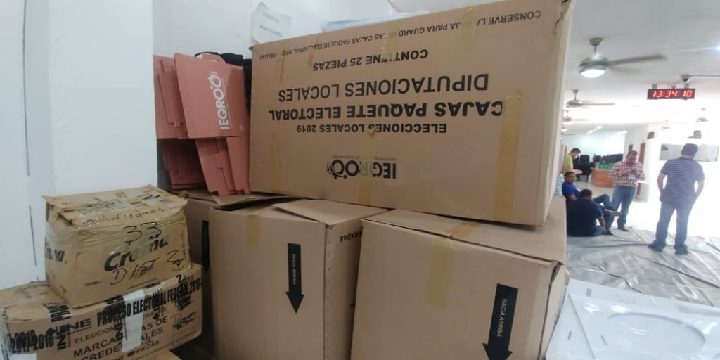 Cabe señalar que en lo que se refiere al material electoral, ésta se distribuirá a los 15 Consejos Distritales, del 17 al 23 de mayo se realizará el conteo, sellado, agrupamiento de boletas y armado de paquetes electorales, para que del 26 al 30 de mayo sean remitidos a las y los presidentes de las Mesas Directivas de Casillas para su utilización el día domingo 2 de junio fecha en que se realizarán las elecciones locales.