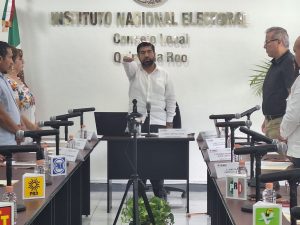 CHETUMAL, 1 de noviembre. – Con una ceremonia cívica el Instituto Nacional Electoral (INE) en Quintana Roo, inició formalmente el Proceso Electoral Federal 2023-2024. El consejero presidente Sergio Bernal Rojas acompañado de consejeros electorales, representantes de partidos políticos, Vocales de área de la Junta Local y Vocales Ejecutivos Distritales del Estado.