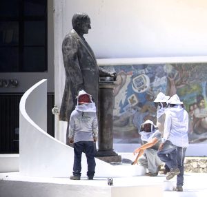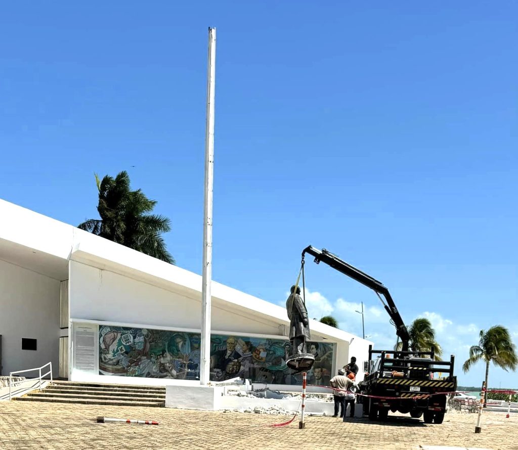 CHETUMAL, 28 de mayo. – El Poder Legislativo del Estado de Quintana Roo informa que como parte de los trabajos preliminares para la construcción de la cafetería del Congreso, este día inició la reubicación de la asta bandera y de la estatua a Andrés Quintana Roo, que actualmente se encuentran en la plazoleta de la sede legislativa.