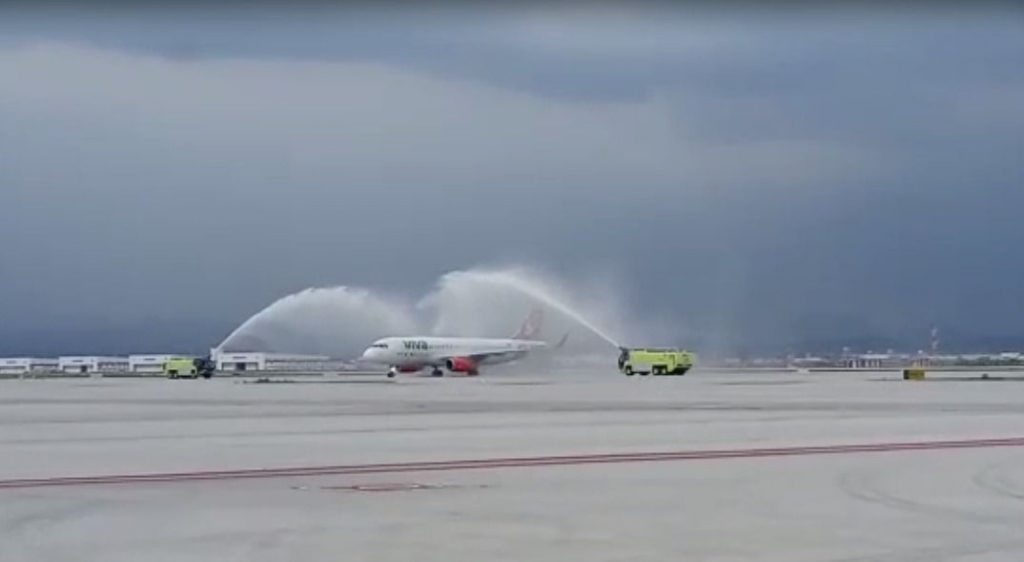 BENITO JUÁREZ, 15 de julio.- Hoy, Viva Aerobus inauguró su nueva ruta desde el Aeropuerto Internacional Felipe Ángeles (AIFA) a Cancún; el primer vuelo despegó del Caribe mexicano a las 13:05 y aterrizó en la capital del país a las 15:25 con más de 150 pasajeros a bordo. 65 minutos más tarde el vuelo partió de la Ciudad de México (AIFA) al caribe mexicano, con 175 pasajeros, mismo que llegará a su destino hacia las 18:55 horas