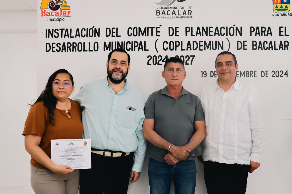 BACALAR, 19 de noviembre. – Asumiendo el compromiso de conjuntar esfuerzos y sumar todas las voces por un Bacalar próspero para todos, este día quedó formalmente instalado el Comité de Planeación para el Desarrollo Municipal (Coplademun) 2024-2027.