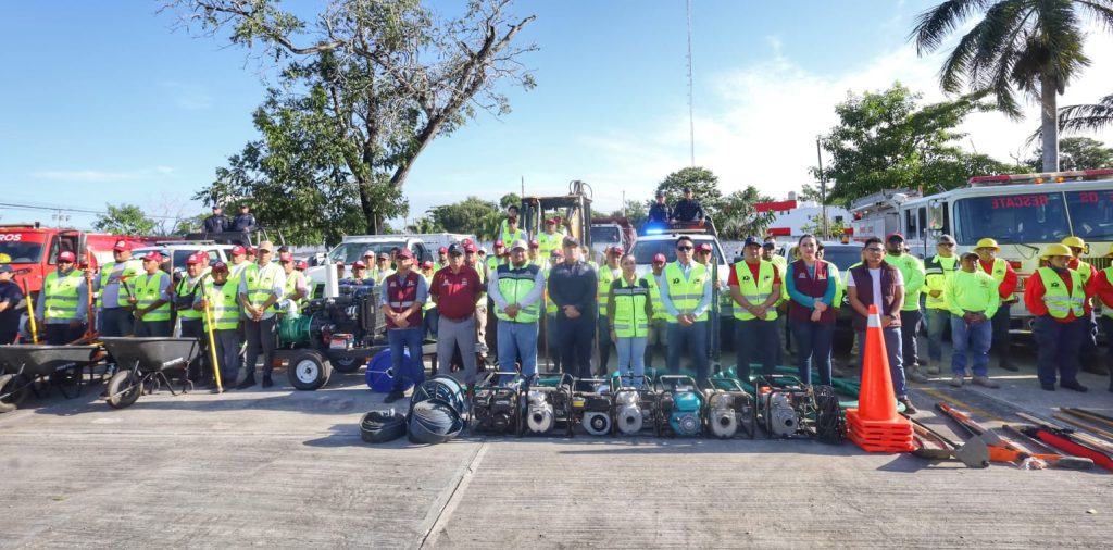 CHETUMAL, 12 de noviembre. Con un estado de fuerza de más de 120 elementos y más de 27 vehículos especializados, la presidenta municipal de Othón P. Blanco, Yensunni Martínez Hernández, desplegó en territorio al equipo del Operativo Tormenta del municipio, para intensificar las labores y acciones preventivas ante el pronóstico de lluvias fuertes a torrenciales que se esperan del 12 al 14 de noviembre en la zona sur de Quintana Roo.