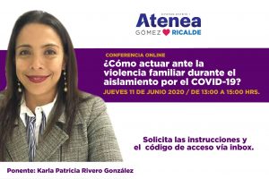 En ese sentido, la legisladora invitó al público en general a participar este jueves 11 de junio a las 13:00 horas en la conferencia “Cómo actuar ante la violencia familiar durante el aislamiento por el COVID-19”, que organiza a través de la plataforma Google Meet (En línea). “La ponencia estará a cargo de la maestra Karla Rivero, titular de la Ceaveqroo y las personas interesadas en participar pueden contactarme vía inbox en mis redes sociales para brindarles mayor información y orientación acerca de cómo acceder a la misma”, añadió.
