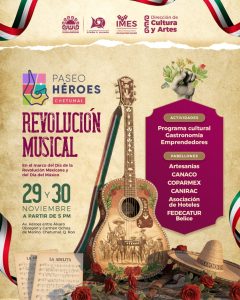CHETUMAL, 26 de noviembre. – Todo está listo para el Paseo Héroes edición Revolución Musical, evento que llenará de alegría, sorpresas y mucha diversión la emblemática avenida De Los Héroes de la capital del Estado este 29 y 30 de noviembre.