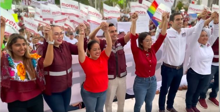 CHETUMAL, 16 de abril. – Ante más de cinco mil personas, la candidata de la coalición Sigamos Haciendo Historia a la presidencia municipal de Othón P. Blanco, Yensunni Martínez Hernández inició su campaña proselitista en la que invitó a los ciudadanos a refrendar su voto por este proyecto de la construcción del segundo piso de la cuarta transformación que encabeza Claudia Sheinbaum Pardo.