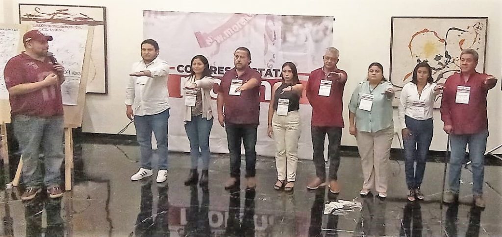 Los integrantes de la nueva dirigencia estatal de Morena, una vez concluida la asamblea, la cual se realizó sin mayores contratiempos, rindieron la protesta de Ley correspondiente.