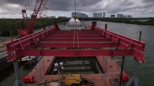 La SICT instala puente metálico tipo arco en el puente Nichupté