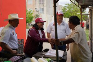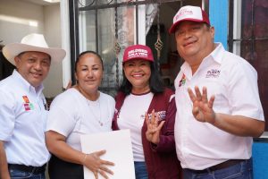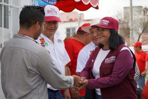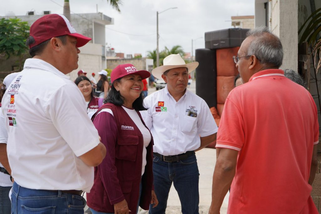 Mildred Ávila saludó hoy a vecinas y vecinos del fraccionamiento Prado Norte, en donde destacó la importancia del voto parejo en favor de Morena, acompañada de Rubén Carrillo, candidato a diputado en el distrito 03 local.