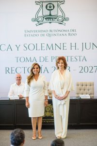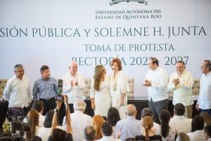 La gobernadora de Quintana Roo calificó el evento como histórico, pues se conjunta la presencia de la primera mujer gobernadora del Estado, la segunda rectora y el primer proceso de transición de la rectoría en la nueva etapa de autonomía universitaria.