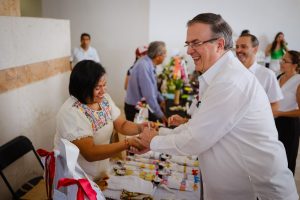 Durante la gira, el secretario Ebrard estuvo acompañado del subsecretario de Industria y Comercio, Vidal Llerenas; del titular de la Unidad de Prospectiva, Planeación y Evaluación de la Secretaría de Economía, Carlos Candelaria; y de la alcaldesa del municipio de Othón P. Blanco, Yensunni Martínez.