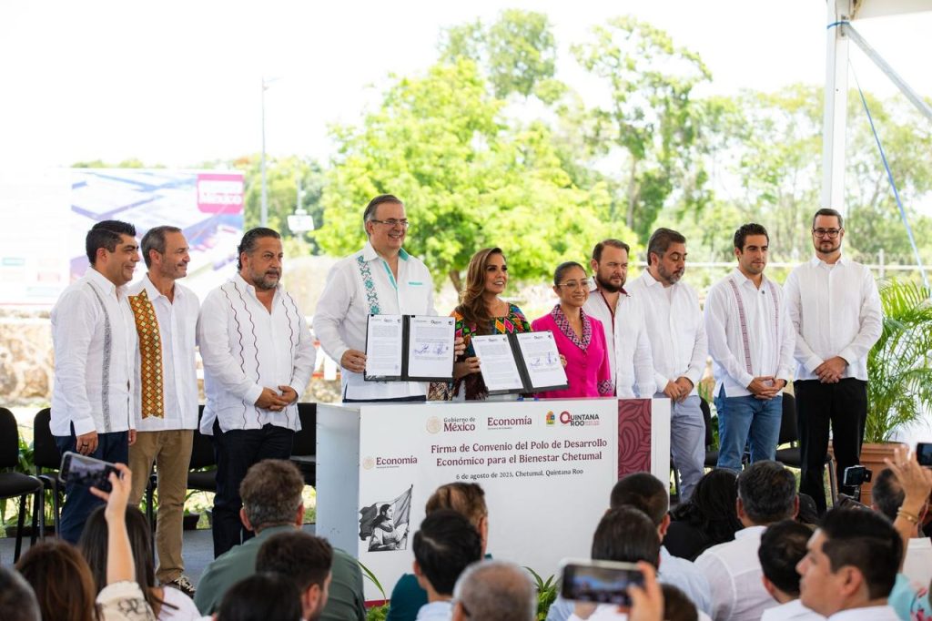 CHETUMAL., 6 de agosto. – La Secretaría de Economía y el Gobierno del estado de Quintana Roo firmaron este día el convenio con el que inician formalmente los trabajos para la construcción del Polo de Desarrollo para el Bienestar Chetumal I.