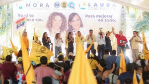 También estuvo acompañada por la ex futbolista Iris Mora, candidata a diputada en el Distrito VII.