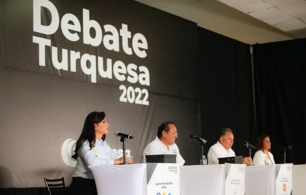 Al igual cómo ocurrió en el debate organizado por la Coparmex en Playa del Carmen el 9 de mayo pasado, Mara Lezama, candidata a gobernadora del Verde-Morena tampoco acudió a este ejercicio democrático.