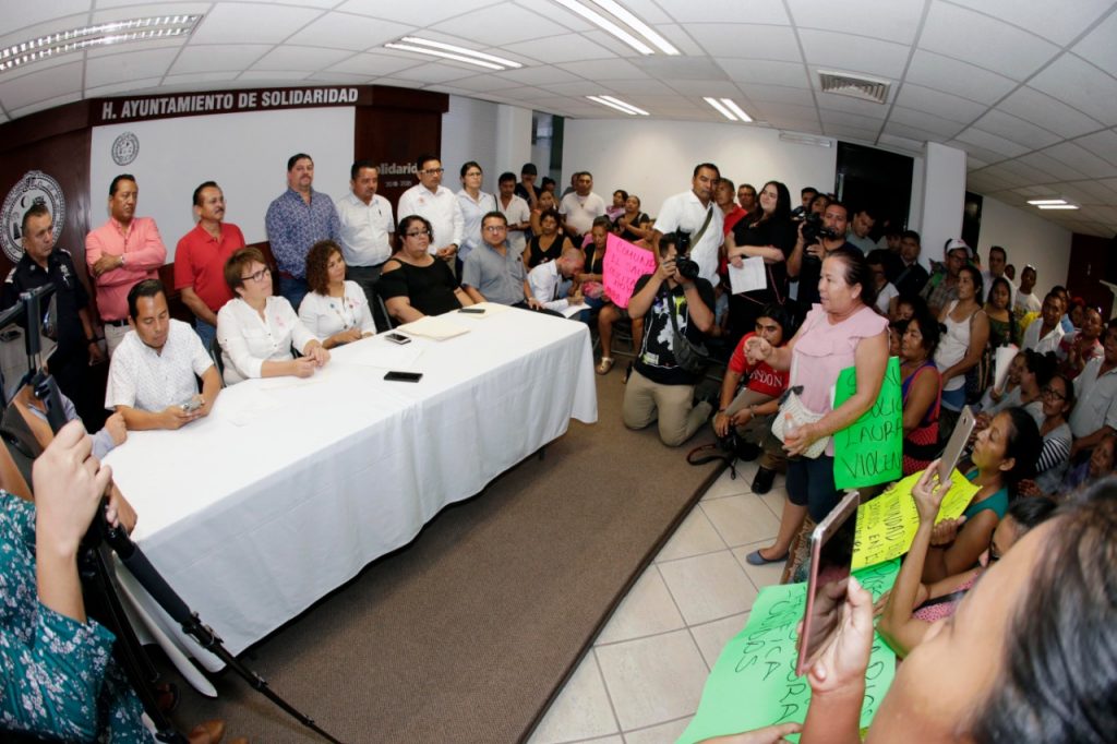 Previamente, durante la reunión, la edil se comprometió con las familias para conformar una comitiva que revise sus necesidades y buscar la manera de ayudarles, aunque advirtió que el Ayuntamiento de Solidaridad, no toma partido en disputas por la tenencia de la tierra, pues eso es un tema que se debe dirimir ante las instancias correspondientes; sin embargo es su responsabilidad garantizar la tranquilidad y paz social en el municipio.