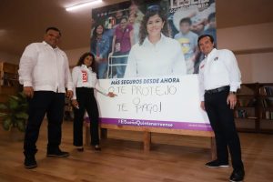 Ante decenas de militantes, candidatos a diputaciones locales, exgobernadores, entre otros, se llevó a cabo la presentación de primer programa denominado “O te protejo o te pago” como parte de la estrategia general “Quintana Roo Seguro y en Paz”, efectuado en la Biblioteca Nacional de la Crónica, en Cancún; por parte de la candidata a la gubernatura de Quintana Roo.