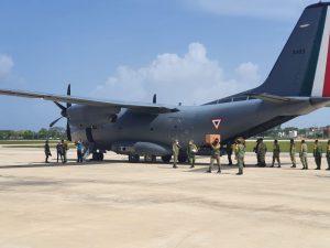 Este viernes como parte de las acciones realizadas dentro de la fase de “Auxilio” del Plan DN-III- E, en vuelo procedente de la Ciudad de México, la aeronave tipo C-27J “Spartan” de la Fuerza Aérea Mexicana aterrizó en el Aeropuerto Internacional de Chetumal con los insumos médicos hospitalarios.