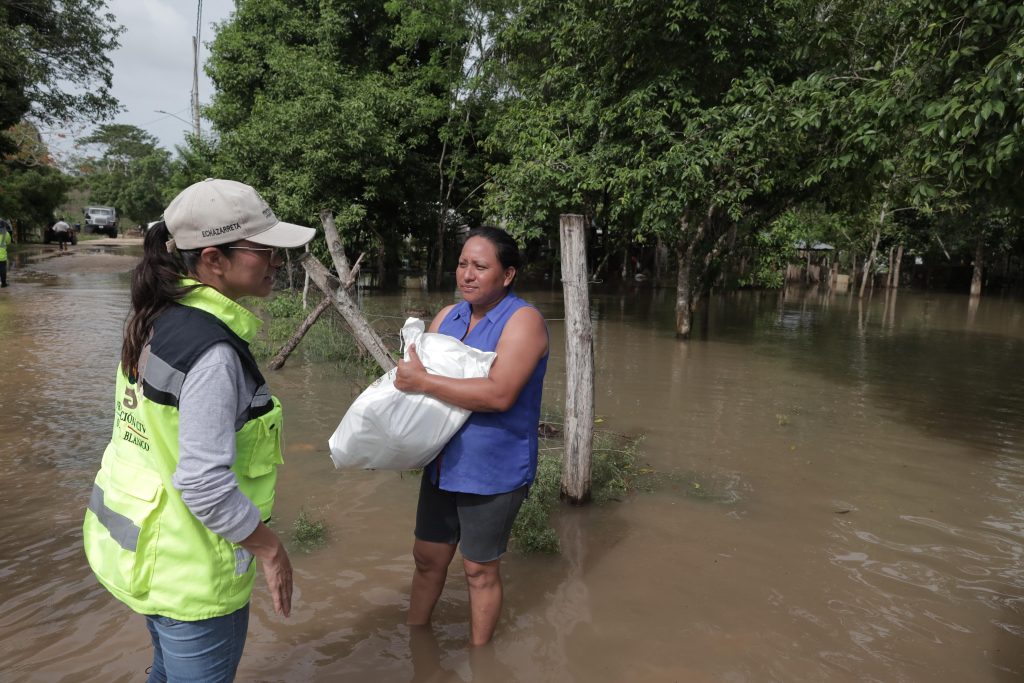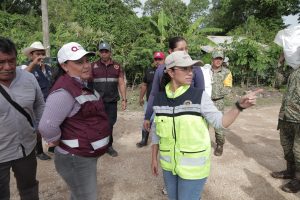 ÁLVARO OBREGÓN, OTHÓN P. BLANCO, 29 de junio. La presidenta municipal de Othón P. Blanco, Yensunni Martínez Hernández, realizó un recorrido por la comunidad de Álvaro Obregón, una de las más afectadas por las lluvias, donde pasó casa por casa para entregar apoyos alimentarios a las familias que los requerían.