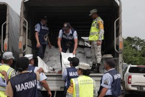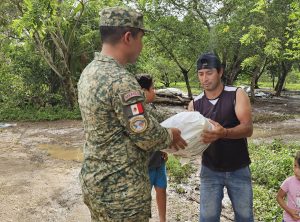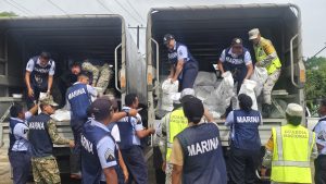 La presidenta municipal Yensunni Martínez agradeció a la Marina, Secretaría de la Defensa Nacional (Sedena) y Guardia Nacional, que además de ayudar con la entrega de despensas, habilitaron una cocina comunitaria en la escuela secundaria “Rafael E. Melgar”.