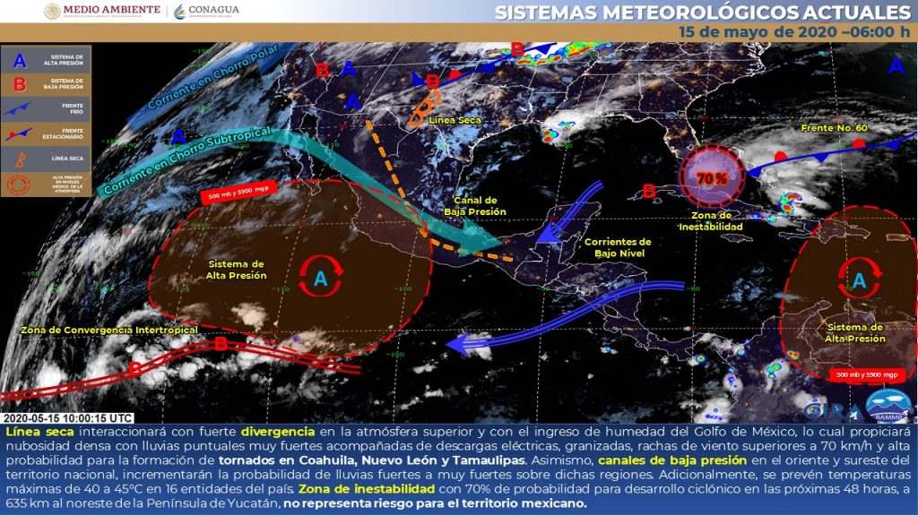 Pronóstico de precipitación para hoy 15 de mayo de 2020: