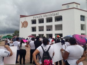 CHETUMAL, 22 de junio.- Los locatarios de los mercados “Ignacio Manuel Altamirano”, “Lázaro Cárdenas del Río”, “Andrés Quintana Roo” y “5 de Abril”, de esta ciudad de Chetumal, Quintana Roo, organizaron un plantón frente al palacio municipal para pronunciarse en contra de la Edil Morenista, Yensunni Martínez Hernández por el intento de despojo que pretende hacer al modificar las concesiones en los centros de abasto.