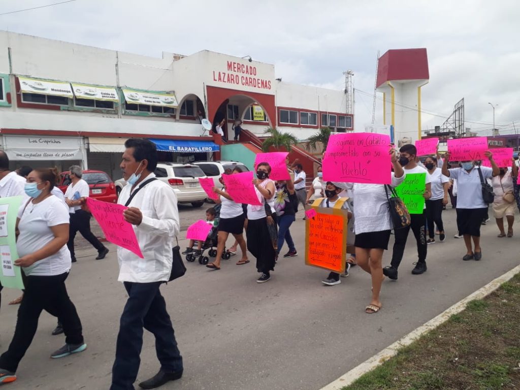Además están inconformes quienes realizaron una caminata desde sus centros de abasto hasta el palacio municipal dijeron que con la aplicación del artículo 149 de la Ley de Hacienda del Municipio de Othón P. Blanco que impone el pago de una renta mensual por el uso de los locales por los cuales se quiere aplicar en UMAS (Unidad de Medida y Actualización) y por metro cuadrado.