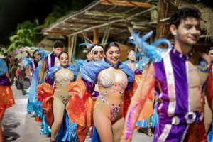 CHETUMAL, 08 de marzo. Toda la magia y diversión del Carnaval llegó a Mahahual, comunidad turística de Othón P. Blanco que vivió una gran fiesta la noche de ayer, iluminándose de colores y vibrando al ritmo de la música caribeña.