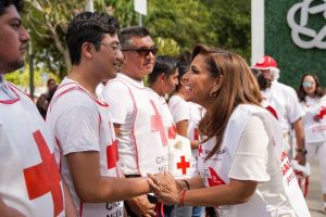 Acompañada de Carlos Constandse Madrazo, presidente del Consejo Directivo de la Cruz Roja en Quintana Roo; de Ana Paty Peralta de la Peña, presidenta municipal de Benito Juárez; de Mariana Jamit, presidenta de Damas Voluntarias de la Cruz Roja de Cancún; la gobernadora destacó la importancia de la participación ciudadana.