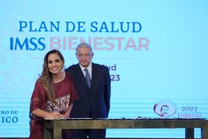 CIUDAD DE MÉXICO, 10 de octubre. – La gobernadora Mara Lezama Espinosa firmó hoy con el Presidente Andrés Manuel López Obrador el Acuerdo Nacional de la Federalización de los Servicios de Salud, junto con otros gobernadores del país.