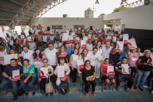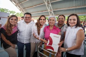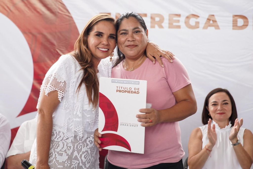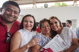 “Trabajamos codo a codo, para cumplir su sueño de tener su propio pedacito de tierra” expresó la gobernadora de Quintana Roo al entregar de forma directa sus documentos a 39 mujeres madres solteras, 29 hombres y 40 parejas.