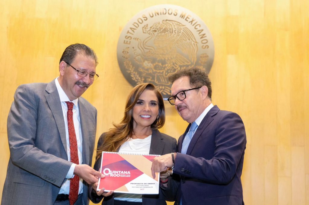 En este marco, Mara Lezama entregó a los diputados Reginaldo Sandoval Flores, presidente de la Comisión de Infraestructura e Ignacio Mier Velazco, presidente de la Junta de Coordinación Política, proyectos de obras de justicia social para Quintana Roo, entre las que se encuentran carreteras federales para que se inviertan recursos en la movilidad.