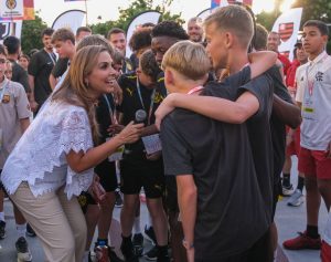 BENITO JUÁREZ, 12 de octubre.- Con la participación de 16 equipos pertenecientes a las Fuerzas Básicas de los clubes más reconocidos a nivel mundial, la gobernadora Mara Lezama Espinosa puso en marcha la primera edición del “The Football Games Cancún 2023” durante una ceremonia realizada en la Plaza de la Reforma.