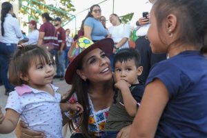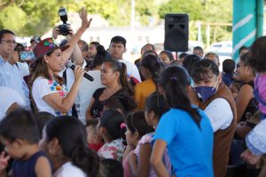 En el domo de usos múltiples de Sabidos, municipio de Othón P. Blanco, la primera mujer gobernadora de Quintana Roo convivió con la niñez y dijo estar contenta de verlos correr, alegres, escuchar sus risas, porque estos momentos son los que importan en la vida.