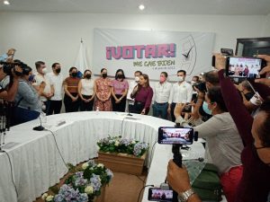 El Consejo General del Ieqroo aprobó la solicitud de registro presentada por la coalición “Juntos hacemos historia en Quintana Roo”, que postuló a Mara Lezama Espinosa como candidata a la gubernatura del Estado en el proceso electoral local 2021-2022.