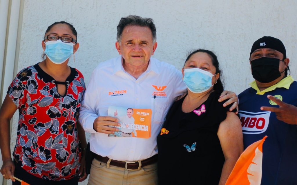 Acompañado del delegado de MC en el estado, Jacobo Cheja, el Dr. Pech dijo que en Quintana Roo se juega el que sigan las cosas igual, con beneficios para unos cuantos privilegiados, o se cambie ahora si en serio, porque quienes hace seis años se pusieron la bandera del cambio, fracasaron, y eso ahora tiene cansada y enojada a la gente, la cual solo cuenta con un solo proyecto que puede garantizar el cambio tan esperado y ese es el que encabeza Movimiento Ciudadano, que le dará a Quintana Roo un gobierno decente.