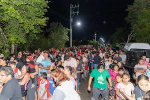 El munícipe además de entregar la obra de electrificación, de la mano con el sistema DIF-Tulum que preside Ileana Canul de Dzul, entregaron a los niños y niñas juguetes por la cercanía de la Navidad y a las jefas de familia despensas para contribuir a la economía familia.