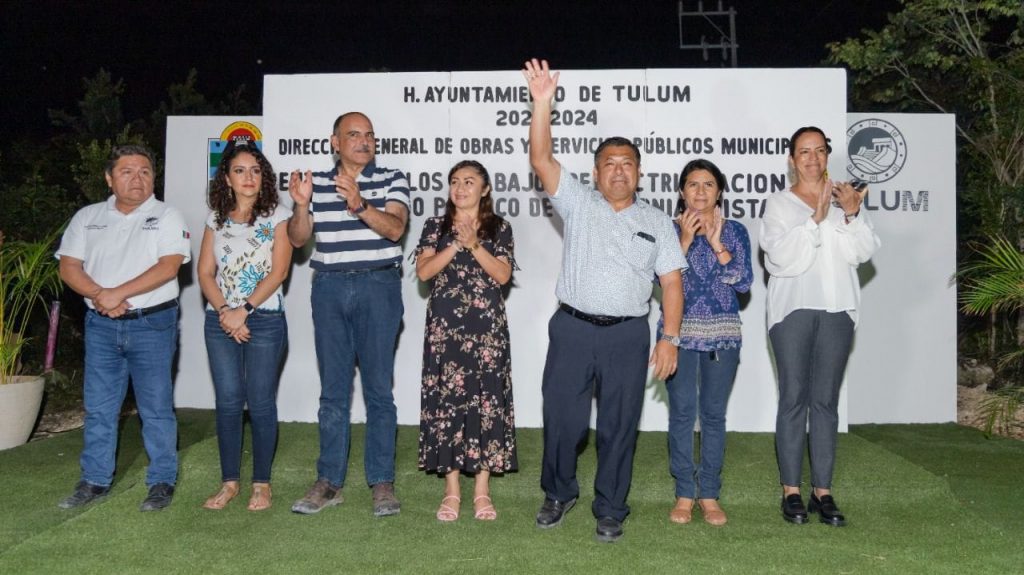 TULUM, 6 de diciembre.- El presidente municipal de Tulum, Marciano Dzul Caamal acompañado de integrantes del cabildo, entregó una de las más emblemáticas obras de su administración, la electrificación en la colonia Cristal que beneficia a 737 viviendas y eleva la calidad de vida de los tulumnenses.