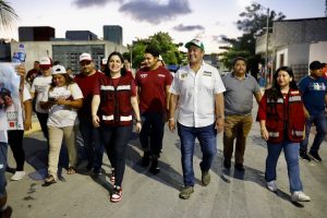 PLAYA DEL CARMEN, 8 de mayo. – La candidata de la Coalición “Sigamos haciendo historia en Quintana Roo”, Estefanía Mercado encabezó una caminata en los fraccionamientos Palmas I y Villas del Sol, donde se comprometió con los vecinos mayor seguridad, alumbrado público y mejorar las condiciones de todos los parques.