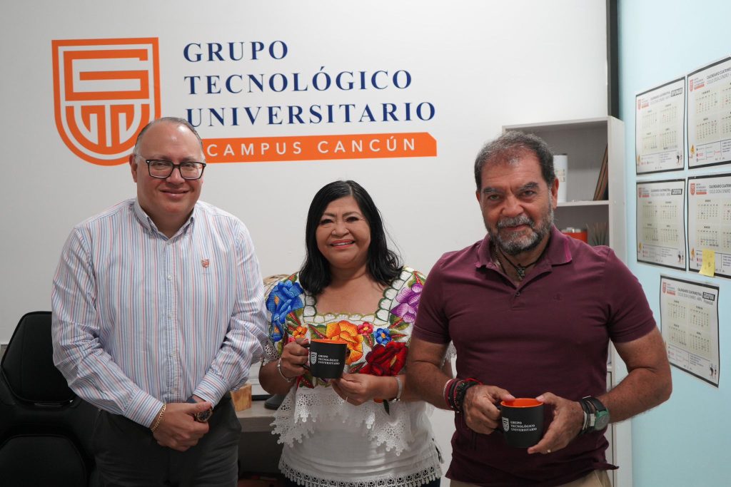 Junto con Humberto Aldana Navarro, candidato de Morena a diputado federal en el distrito 03, la aspirante morenista acudió a un desayuno por invitación de directivos del Grupo Tecnológico Universitario, para festejar el día con el personal docente de esta institución.