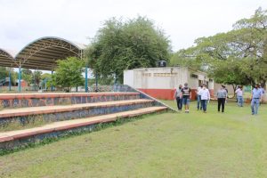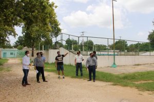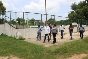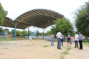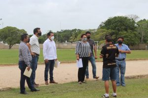 Acompañada del director de Obras Públicas, Baltazar Suárez Yah, del síndico municipal, Víctor Díaz Selem, y otros funcionarios, la alcaldesa evaluó la propuesta en la que se aplicará un proyecto para hacer de la unidad deportiva, un espacio incluyente e integral para la activación física.