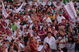 En un multitudinario mitin, entre porras y muestras de apoyo, Mara Lezama, acudió acompañada de su familia y reiteró que los próximos cinco años serán los mejores en la historia de Benito Juárez y de Quintana Roo.