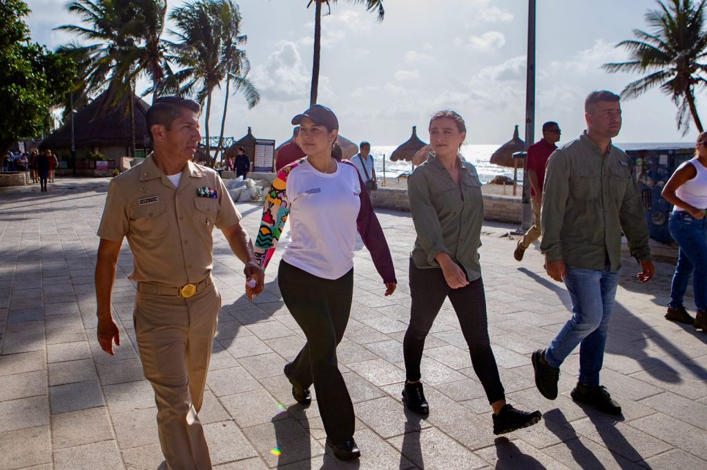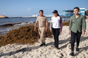 PLAYA DEL CARMEN, 12 de junio. – En un despliegue sin precedentes de coordinación y compromiso institucional, la presidenta municipal de Playa del Carmen, Estefanía Mercado, encabezó este jueves un recorrido por las playas Fundadores y Playacar, donde constató el avance del operativo conjunto con la Secretaría de Marina (Semar) y Zofemat para enfrentar el arribo masivo de sargazo que afecta al litoral del Caribe mexicano.