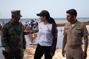 “Quise venir a agradecerles de frente porque este trabajo titánico que realizan todos los días no solo protege nuestras playas, también cuida nuestra economía y nuestro futuro. Gracias a la Marina, a Zofemat y a cada persona que pone manos y corazón en esta tarea”, expresó.