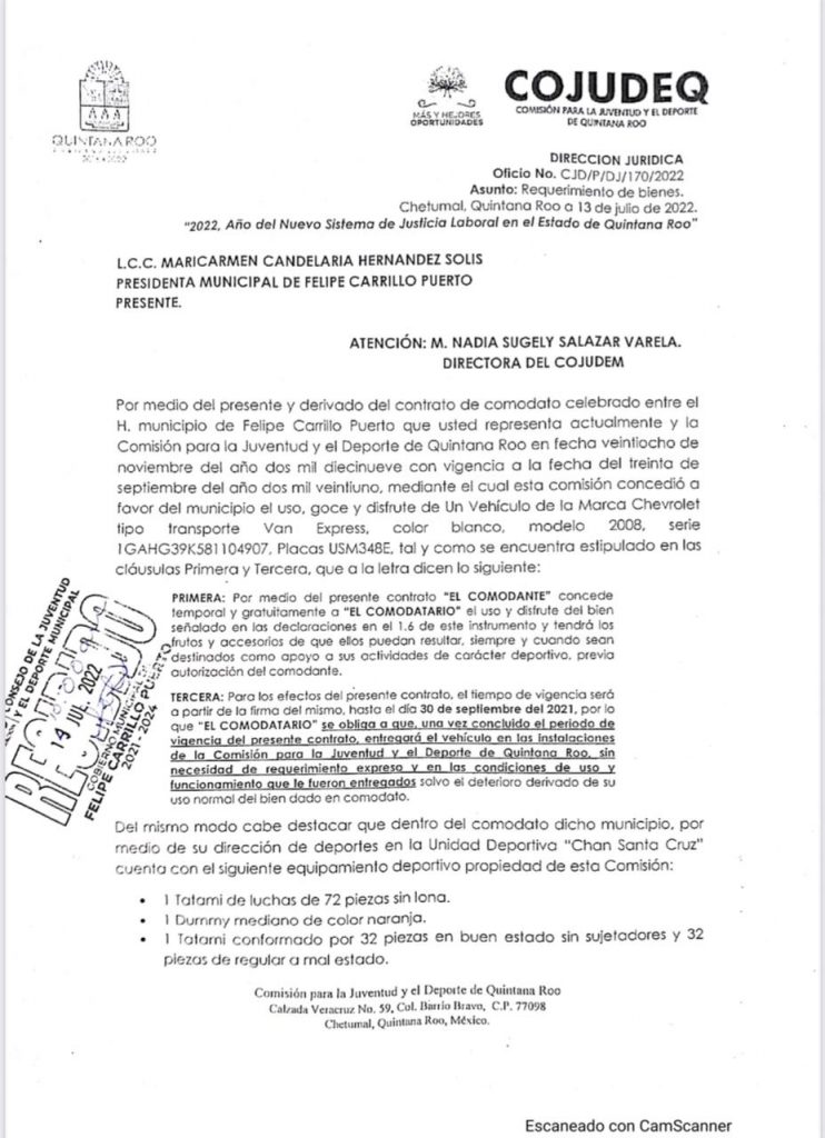 En entrevista, la funcionaria municipal explicó que, en fechas anteriores, personal del departamento jurídico de la Cojudeq retiró equipamiento del Centro de Formación Deportiva, aduciendo que, debido al próximo cambio en el Gobierno del Estado, era necesaria la remoción, hasta que sea nombrado el nuevo titular de la dependencia estatal.