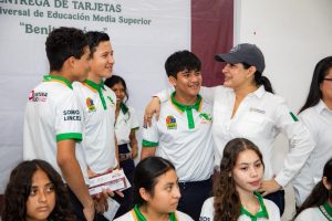 Durante su intervención, Mara Lezama destacó que las becas son una política pública clave para garantizar el acceso a la educación sin que los jóvenes abandonen las aulas por falta de recursos.