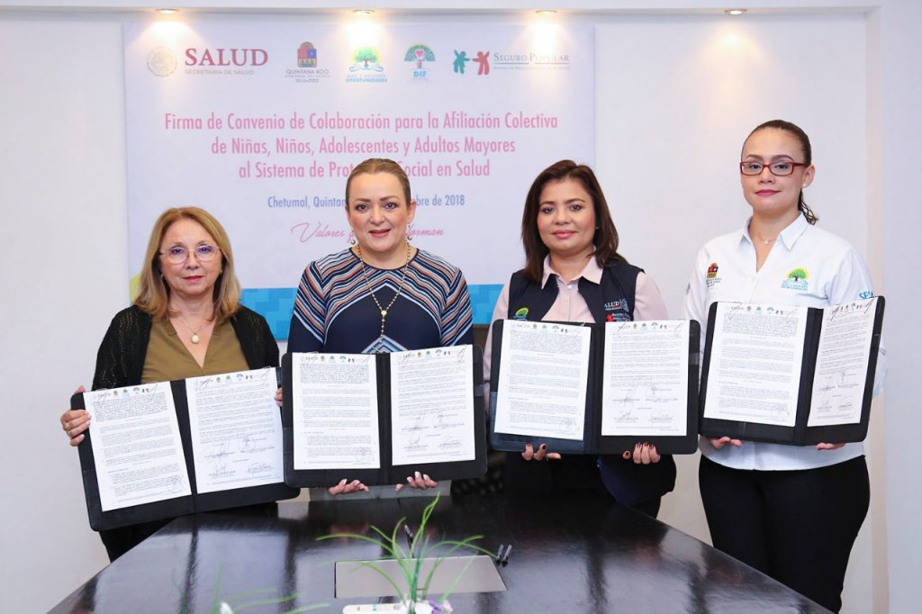 El evento se llevó a cabo en la sala de juntas de la dependencia, donde también firmaron el documento la directora general del DIF Estatal, María Elba Carranza Aguirre; la directora de Servicios de Salud de la Secretaría de Salud, Myriam Ortiz Enríquez y la directora general del Régimen Estatal Protección Social en Salud de Quintana Roo, Aida Gabriela Sosa Guerra.