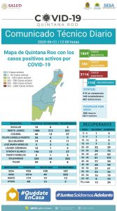 La ciudad de Cancún se mantiene con mil 520 positivos, 319 defunciones y 881 recuperados.