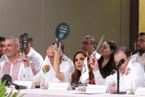En la sesión de la Conago, que preside el gobernador de Oaxaca, Salomón Jara Cruz, Mara Lezama destacó que en Quintana Roo, con base en el Nuevo Acuerdo por el Bienestar y Desarrollo, se trabaja con un programa de capacitación Por un Quintana Roo de Paz para las Mujeres, dirigido a todos los funcionarios públicos del Gobierno de Quintana Roo.