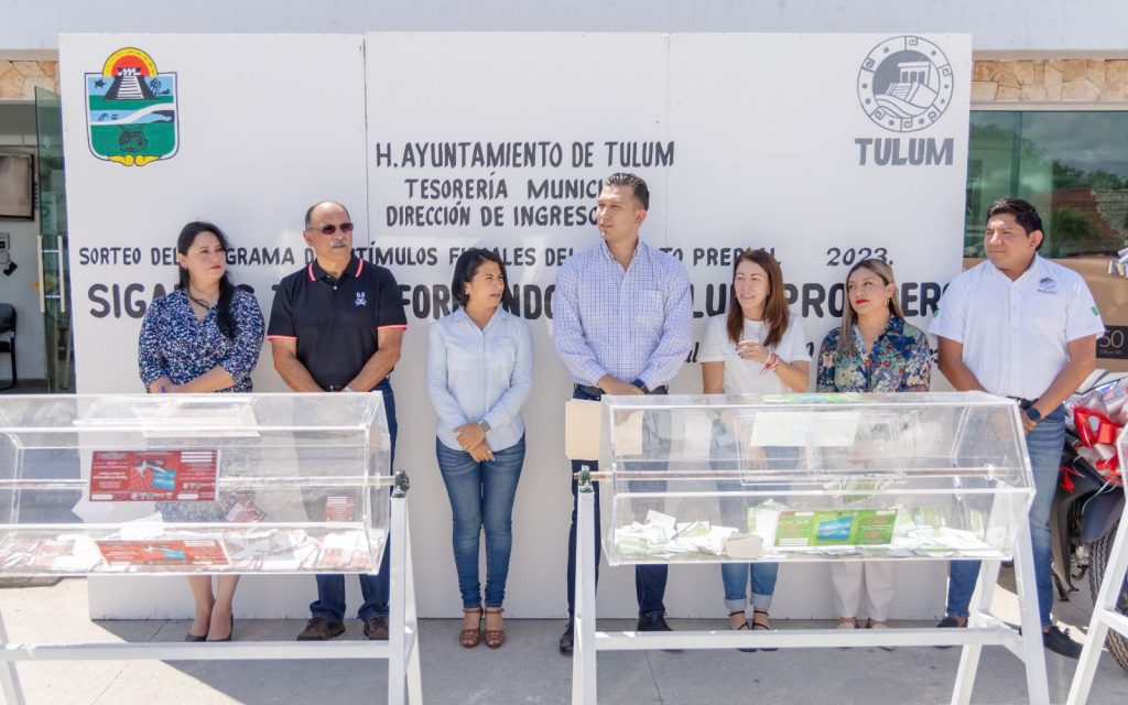 TULUM, 10 de abril.- El Ayuntamiento de Tulum entregó motocicletas y televisores a los contribuyentes que pagaron puntualmente el impuesto predial y que tuvieron derecho a participar en el sorteo “Sigamos Transformando un Tulum Próspero”, el cual permitió una recaudación histórica este año.