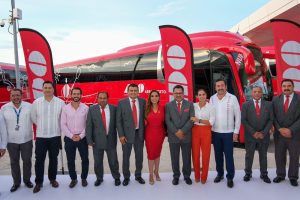 BENITO JUÁREZ, 28 de septiembre.- La gobernadora Mara Lezama Espinosa atestiguó la presentación de 23 nuevas unidades que incrementan la flotilla de ADO para atender el mercado del aeropuerto internacional de Cancún hacia los destinos de Quintana Roo, como una opción de servicio para todos los viajeros.