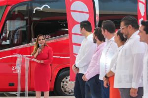 Agradeció a Mobility ADO por crecer la flotilla, por estar en constante mejora, viendo por el beneficio de los destinos turísticos de Quintana Roo, pero también de su gente, eso habla de su calidad humana.